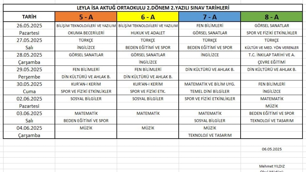 2024-2025 Eğitim Öğretim Yılı 2.dönem 2.yazılı sınav tarihleri